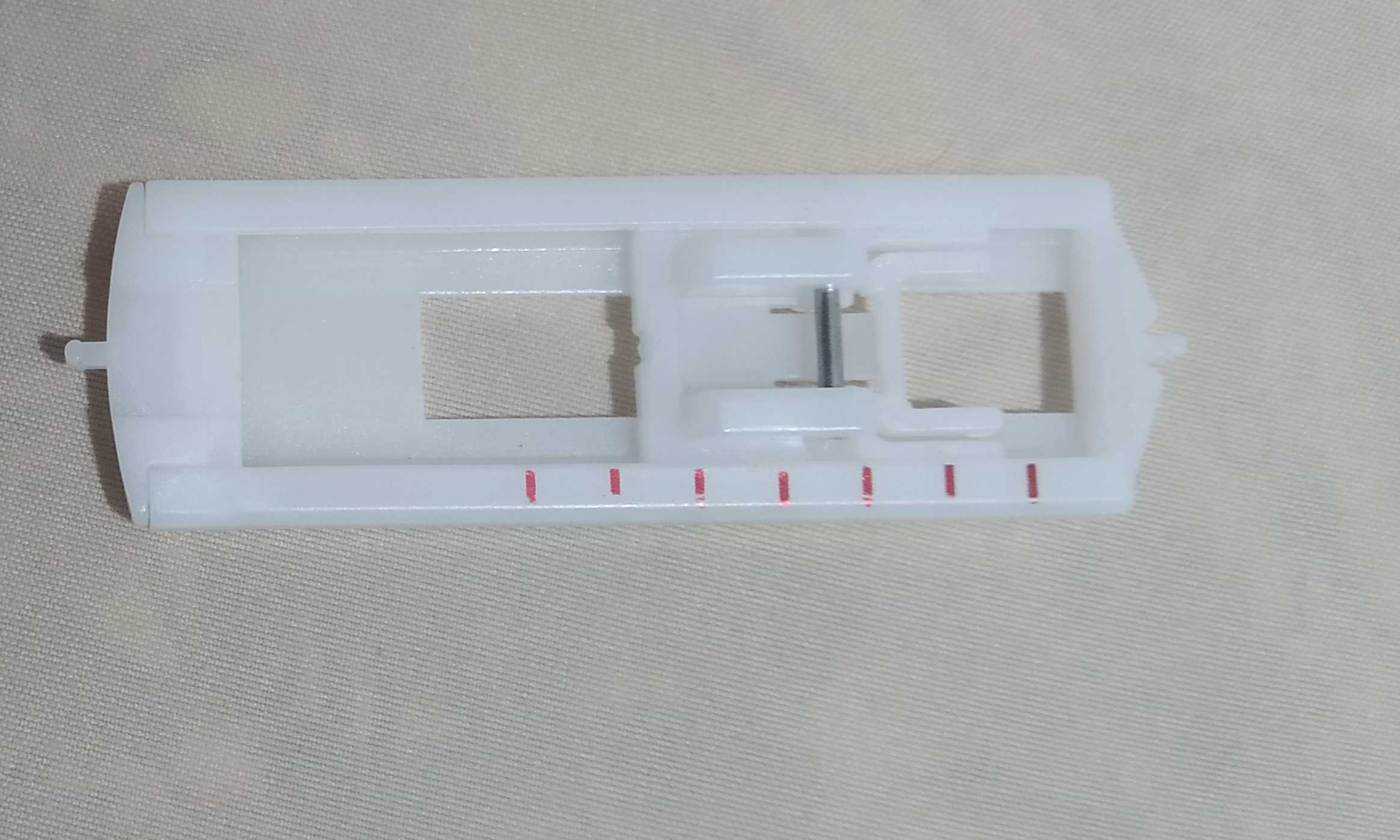 از این پایه به جهت دوخت جای دکمه روی پارچه استفاده می شود . این پایه جنس پلاستیکی داشته و از آن میتوان برای پارچه های ظریف نیز استفاده نمود